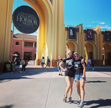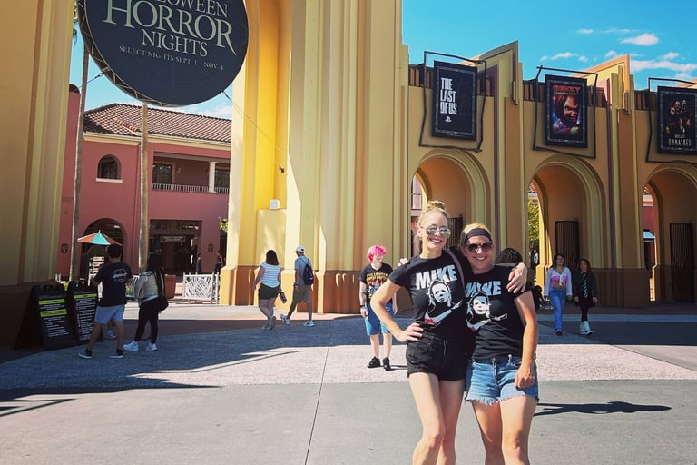 This is where it can get unhinged quickly — in a fun way. My best friend and I coordinate matching shirts (especially for Horror Nights). Highly recommend.